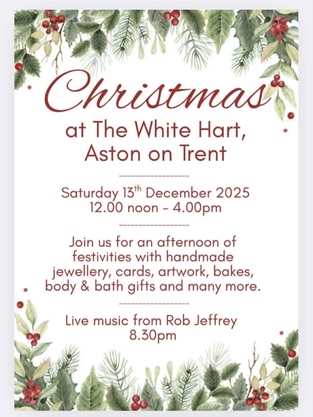 Join us as we trade at this lovely Christmas event at the White Hart in Aston On Trent.